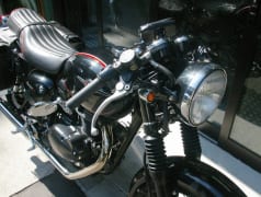 2018.02.03 ESTRELLA250 No.17 コンドルバー ステンレスエキパイ(インジェクション用加工) シガーサイレンサー 社外サイドバッグ ミシュラン ブロックタイヤ バックステップキット カスタムウインカー バーエンドミラー