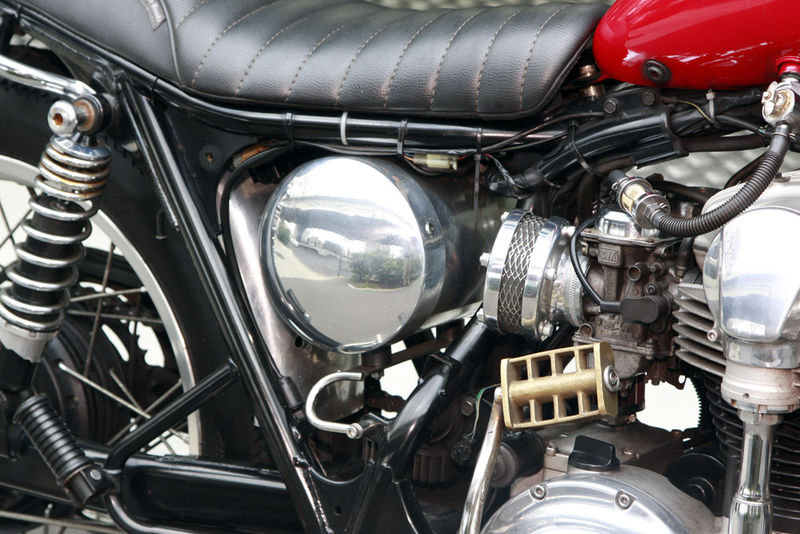 2018.02.05 W650 No.57 マスタングタンク バレルバッテリーケース 社外セミダブルシート アンダーミラー ブラスキックペダル ステンレスフェンダー シガーサイレンサーキット ローダウン三点セット ルーカステール 5-3/4ボトムライト&ステーセット オールドバー