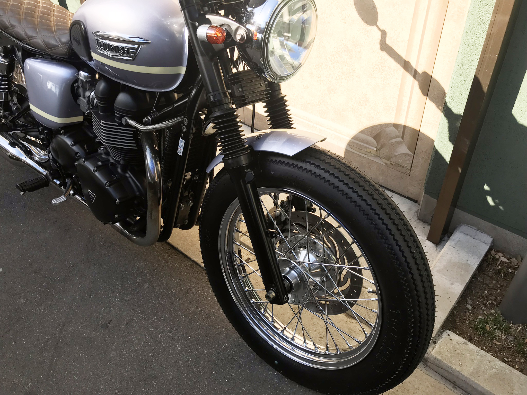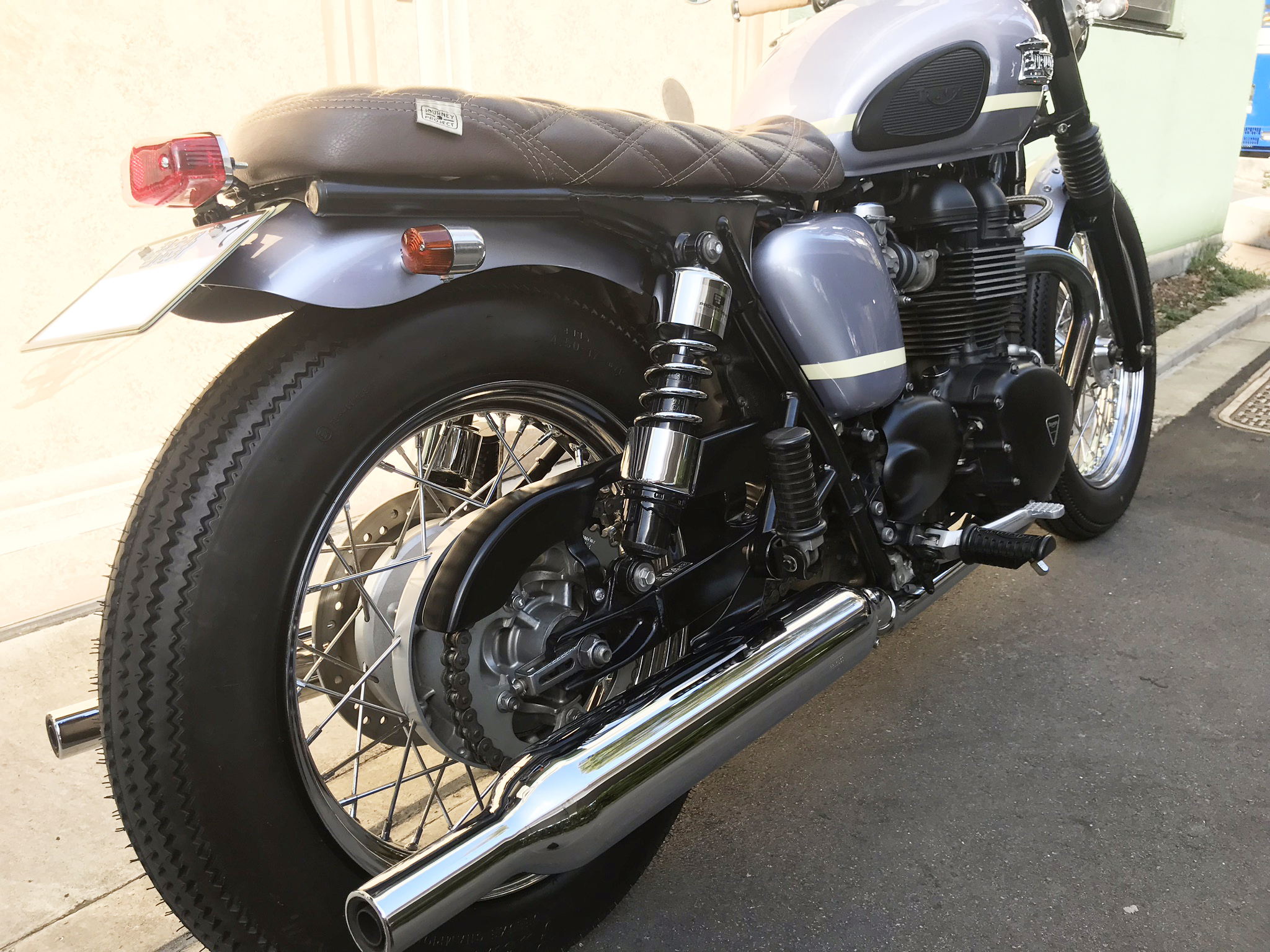2018.10.07 TRIUMPH No.7 Triumph Bonneville 藤色のようなあざやかなカラーでペイントしました。 ・CustomSpec フロントフェンダーショート加工,リアフェンダーショート加工,ペイント(タンク,フロントフェンダー,リアフェンダー,サイドカバー),ローダウンサス,フロントロワリング,Fuckstoneタイヤ,ローハンドル,バーエンドミラー,CBタイプウインカー,ルーカステール