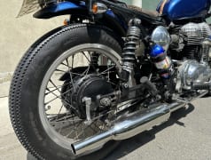 ボンネビルレプリカタンク,電気式スピード,ボトムヘッドライト,カスタムウインカー,リブフェンダー,Firestoneレプリカタイヤ,ローダウン三点セット,ショートリアフェンダー,バレルバッテリーケース,ソロシート&ピリオンシート,テールランプ,etc…