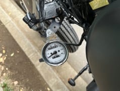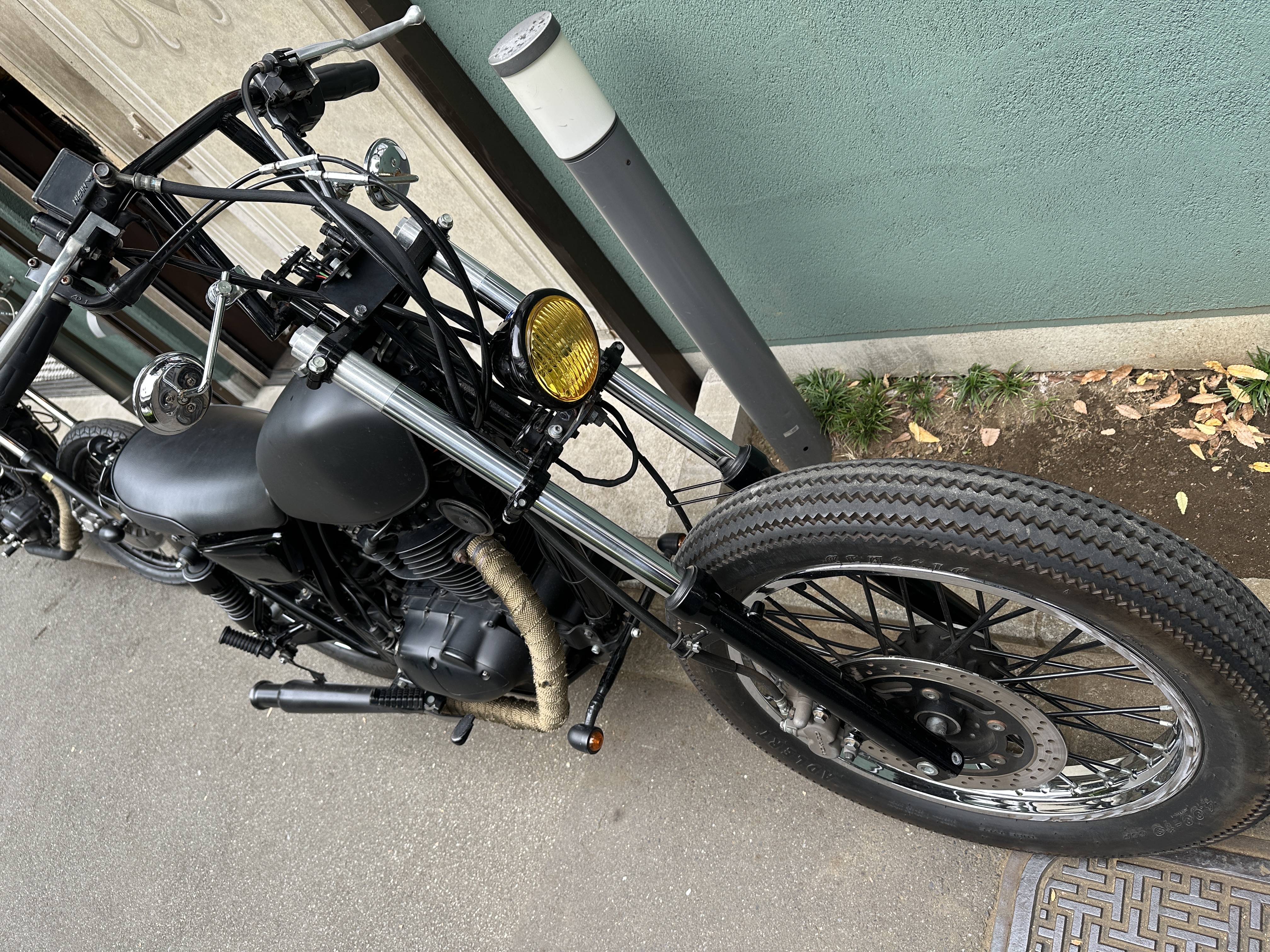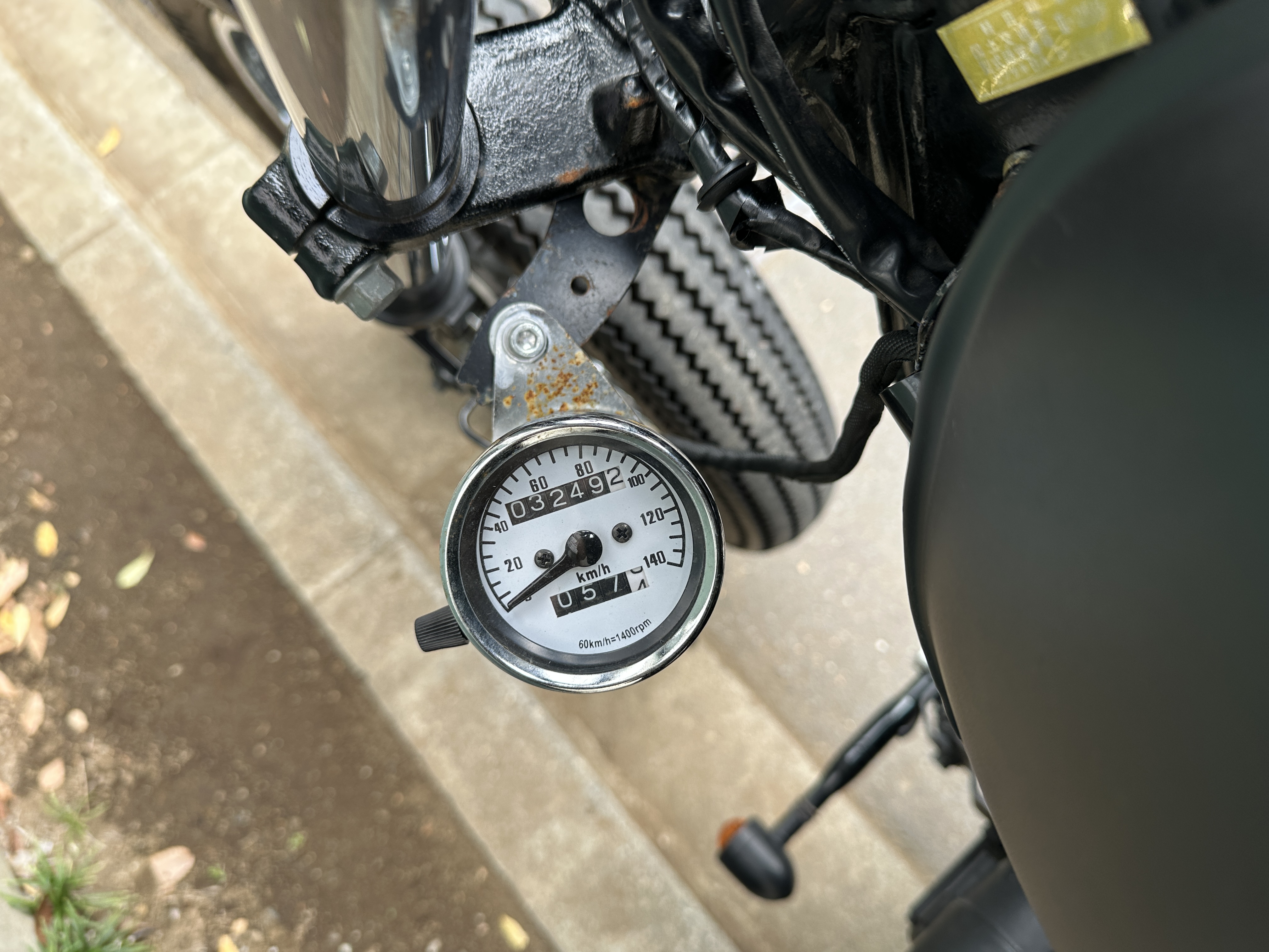 タンク塗装,スピードメーター,ボトムヘッドライト,カスタムウインカー,ショートリアフェンダー,Firestoneレプリカタイヤ,ローダウンサス,カスタムシート,テールランプ,シーソーペダル,フォークジョイント,